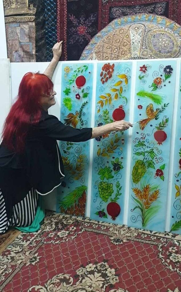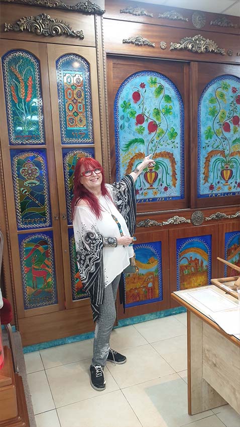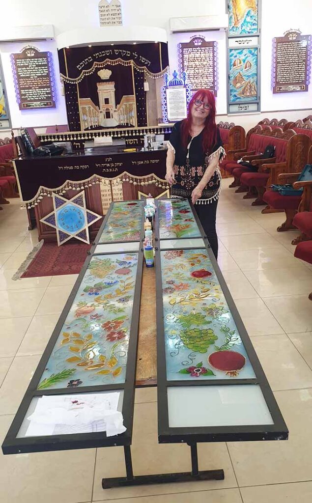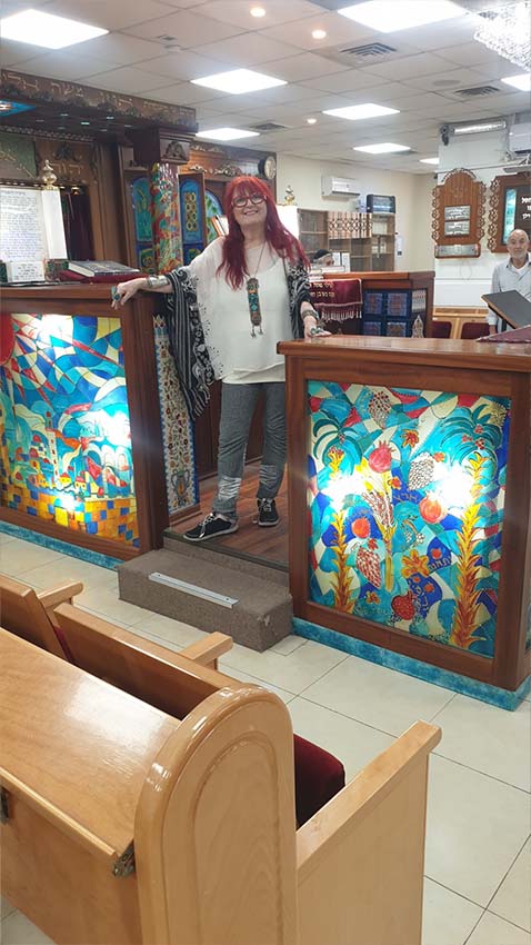 אמנית זכוכית, עבודות אמנות לבתי כנסת, ויטראז׳ים, אריחי קרמיקה וזכוכית, סדנאות זכוכית ויודאיקה
