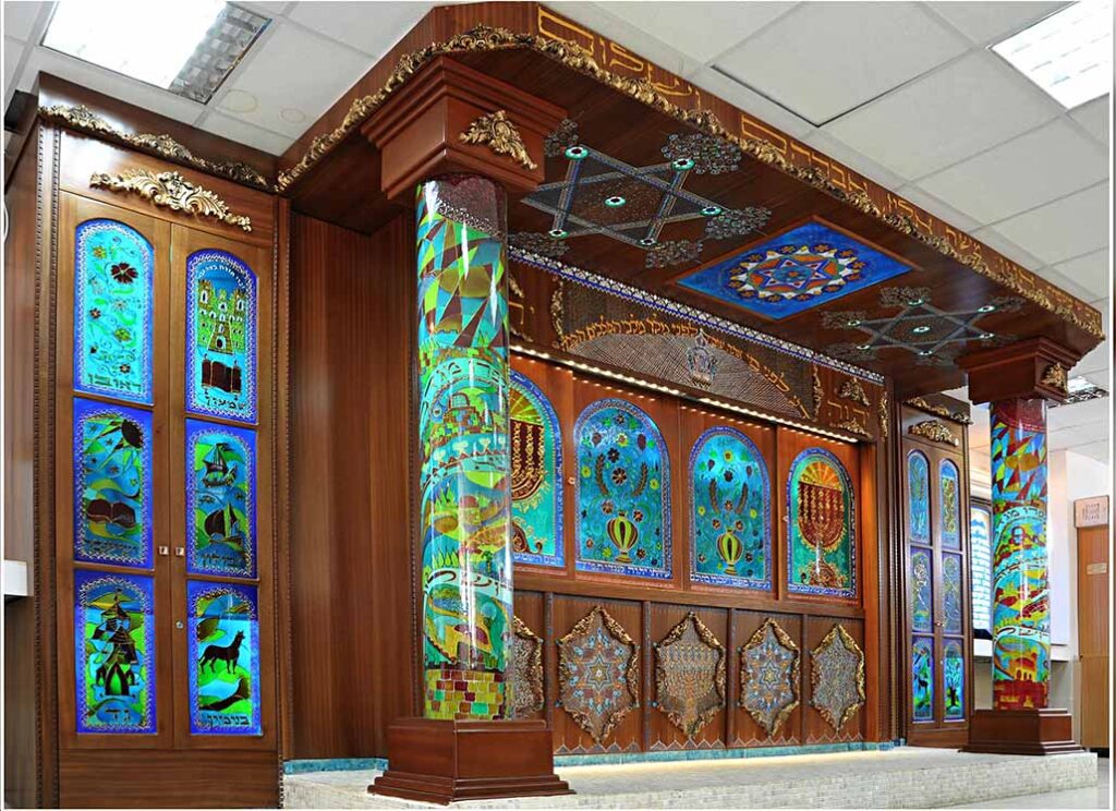 עיצבתי ויצרתי את עבודות השבטים ושבעת המינים על פרספקס לכיסוי ההיכל
