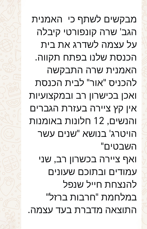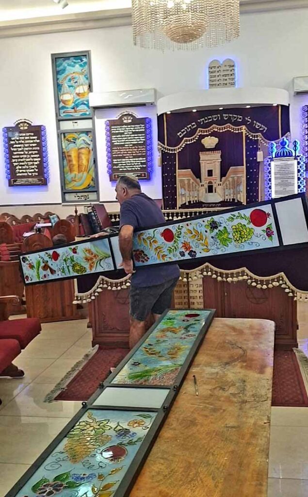 הרכבת הציור מודים וירושלים על חלון בית הכנסת מורשת אבות 2023