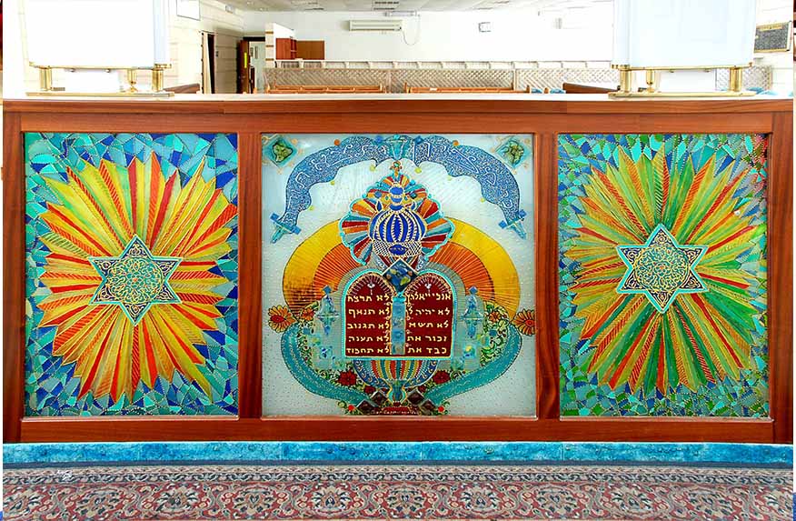 לוחות הברית, ציור על זכוכית מעל ארון הקודש בית כנסת רשב"ג 2023